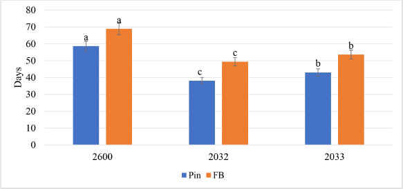 Figure 1: Time to primordia/pinning and FB development in P. eryngii.