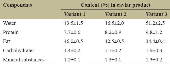 Table 1: Table of composition of caviar products.