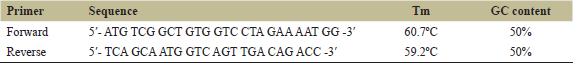 Thermal cycler (CreaCon, Holland) was used with the following conditions: 40 cycles; each cycle consisted of denaturation at 95°C for 30 seconds, followed by annealing at 37°C for 1 minute and extension at 72°C for 2 minutes. There was an initial delay for 15 minutes at 95°C at the beginning of the first cycle and a 10 minutes delay at 72°C at the end of the last cycle as a postextension step. Agarose gel (1.5%) was applied to migrate amplicons via MultiSUB Mini Horizontal Electrophoresis System with Power Pro 300 Power supply (Cleaver Scientific, UK) and imaging with gel documentation system (OmniDOC, Cleaver Scientific, UK). Data analysis was carried out using TotalLab analysis software (ww.totallab.com, ver.1.0.1).
