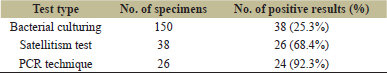 Also, the comparison and correlation of the three methods used in the diagnosis of H. influenzae are summarized in Table 2.