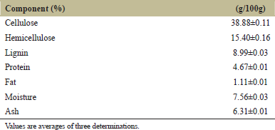 Proximate analysis of pandan prop root including protein, fat, moisture, and ash contents was analyzed by the Central Laboratory (Thailand) Co., Ltd. following the method of analysis for nutrition labeling (1993) p.106 and AOAC methods [15]. Hemicellulose, cellulose, and lignin were analyzed using AOAC methods [15]. All values were reported as g/100 g sample.