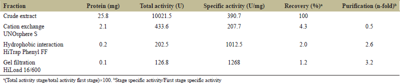 ![]() | Table 1: Purification of polygalacturonase from the midgut of larvae of Oncideres albomarginata chamela [Click here to view] |