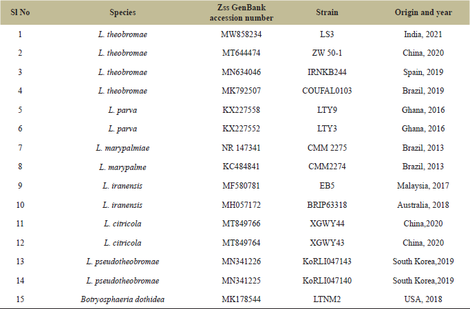 ![]() | Table 2: List of L. theobrame LSU species, origin, and GenBank accession numbers of the ITS sequences used in phylogenetic analysis. A newly generated sequence is in bold. [Click here to view] |