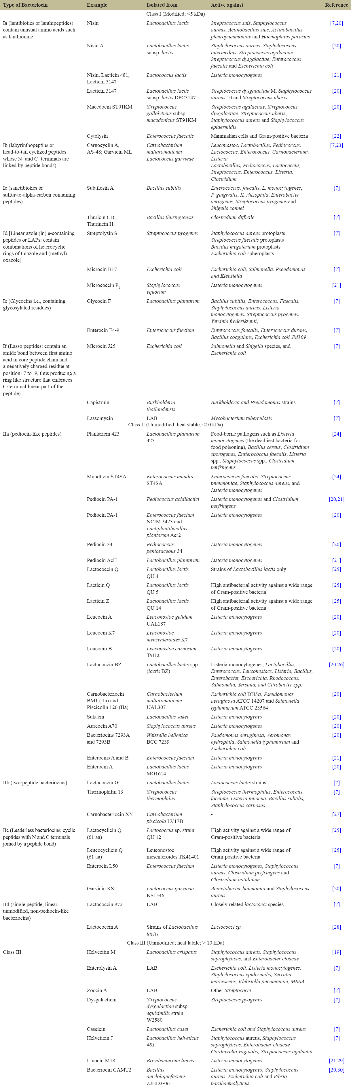 Table 1: Different types of bacteriocins.