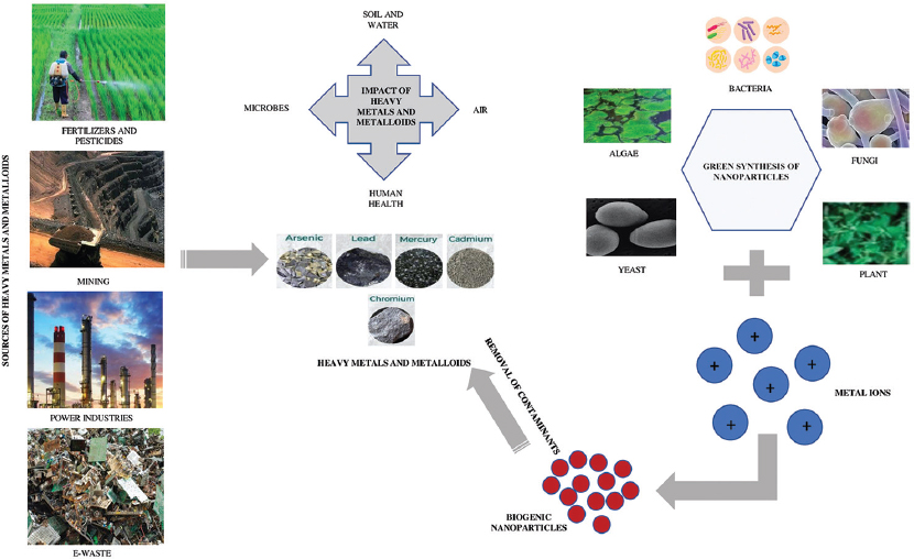 Institutions such as European Observatory for Nanomaterial (EON), USEPA, the OECD Working Party on Manufactured Nanomaterials (WPMN), and ISO Technical Committee TC 229 “Nanotechnologies” have made an effort to establish cooperation at an international level to increase the existing regulations on the use of nanomaterials [12]. In 2015, the Strategic Approach to International Chemicals Management (SAICM) under United Nations Environment Program (UNEP) gave recommendations on the exchange of information, technical and regulatory guidance, and the proper management of nanomaterials. To raise awareness about nano-safety issues and their implications across borders, wide range of activities has been established by the United Nations International Training and Research (UNITAR) [13]. The Indian government in October 2001 came up with an initiative that is addressed as the Nano Science and Technology Initiative (NSTI), and in 2007, another program called nano mission was launched. Under these programs, series of research work has been conducted but the country lacks a robust regulatory framework and does not have any legislation that addresses nanoparticle as hazardous [14]. The present review highlights the impact of heavy metals and metalloids on the environment and human health as well as discusses its remediation through the integration of nanotechnology with bioremediation methods.