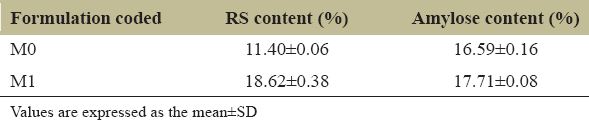 | Formulation coded | RS content (%) | Amylose content (%) |