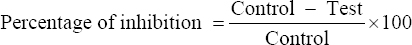 The percentage of inhibition was expressed by following equation: