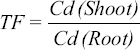 TF for heavy metal Cd within a plant was calculated using the following formula (22).