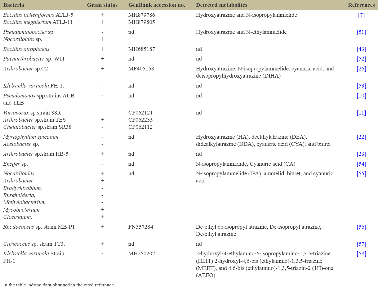 Table 1: List of some Atrazine-degrading bacteria.