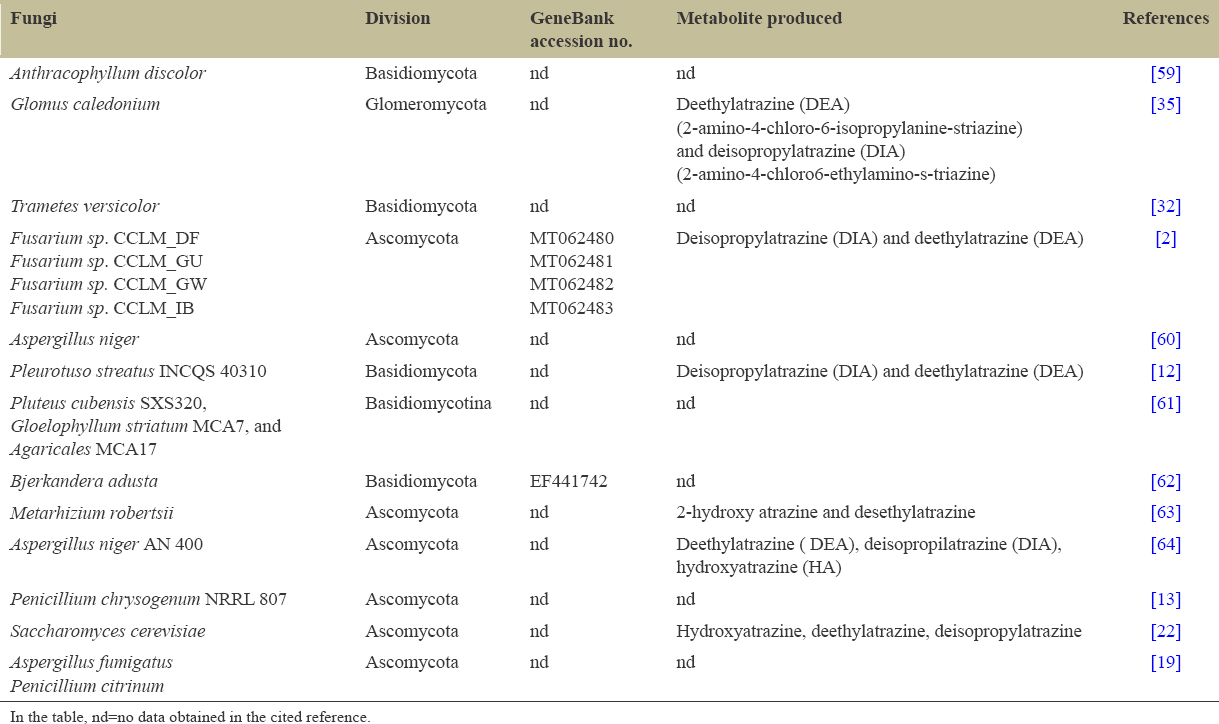 Table 2: List of some atrazine-degrading fungi.