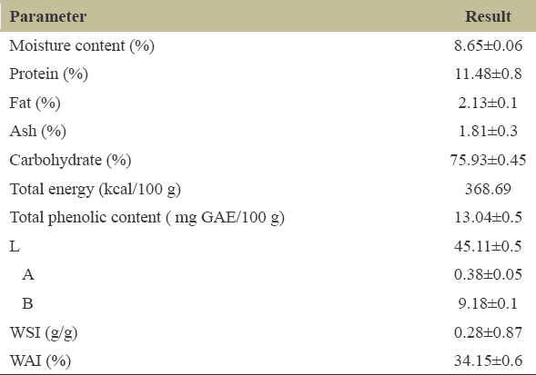 | WSI (g/g) | 0.28±0.87 |