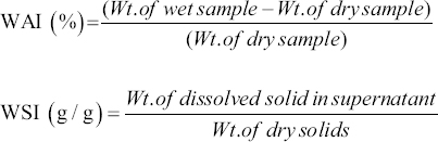 Water Absorption Index and Water Solubility Index were determined using the Anderson [18] procedure.