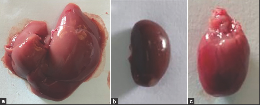| Figure 1: Normal organs (a) liver; (b) kidney; and (c) heart. [Click here to view] |