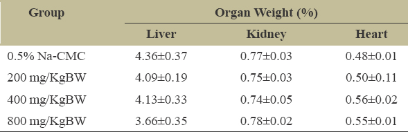 | 800 mg/KgBW | 3.66±0.35 | 0.78±0.02 | 0.55±0.01 |