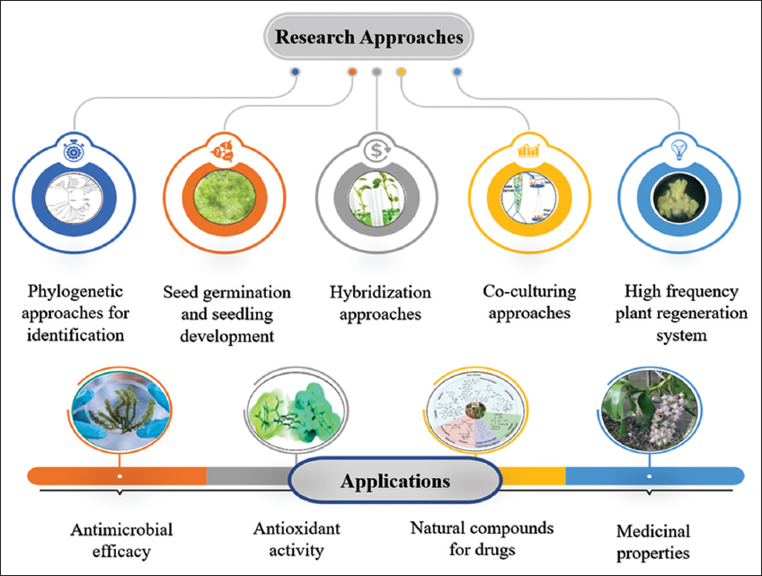 | Figure 3: Research approaches and applications of Aerides odorata. [Click here to view] |