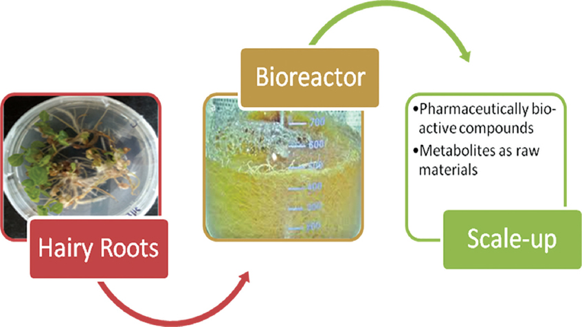 | Figure 2: Hairy root culture for mass production of bioactive compounds. [Click here to view] |