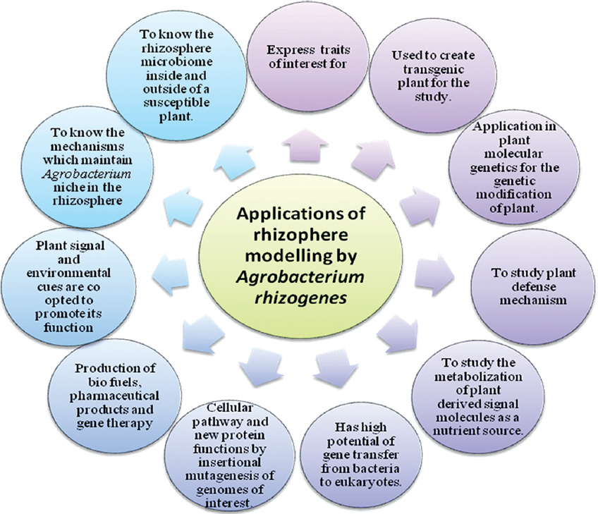 | Figure 3: Applications of rhizosphere modeling by Agrobacterium rhizogenes-mediated transformation. [Click here to view] |
