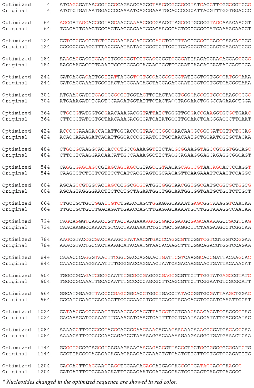 | Figure S2: The optimized gene sequence encoding SARS-CoV-2 nucleoprotein. [Click here to view] |