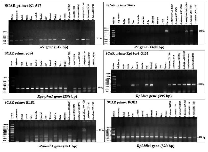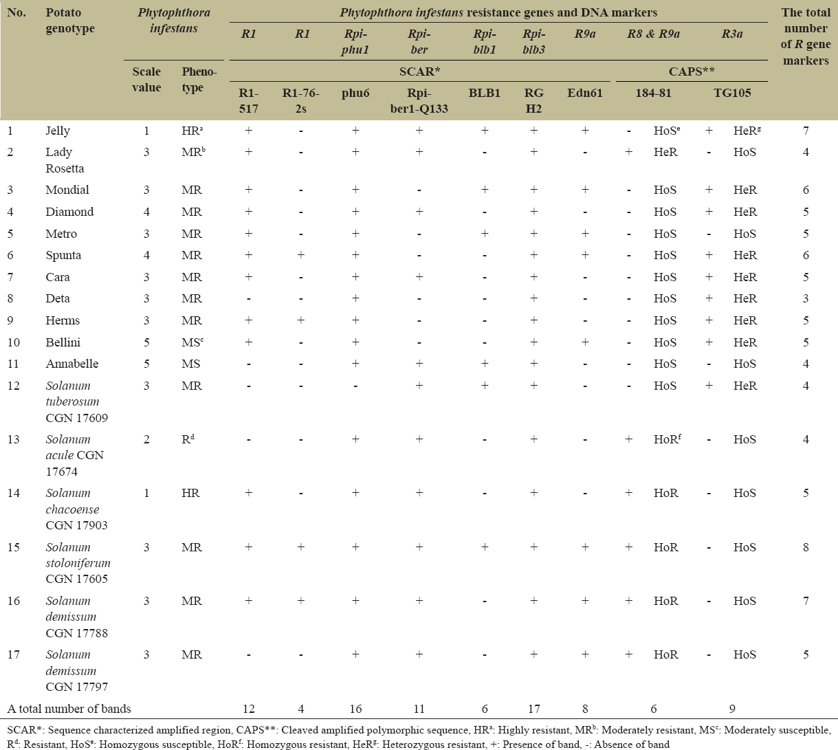 Table 2: SCAR and CAPS markers of P. infestans resistance R genes in 17 potato genotypes.