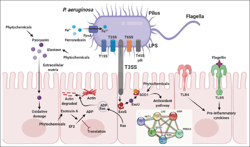 ![]() | Figure 5: Mechanistic targeting of phytochemicals on T3SS machinery and their related pathways. [Click here to view] |