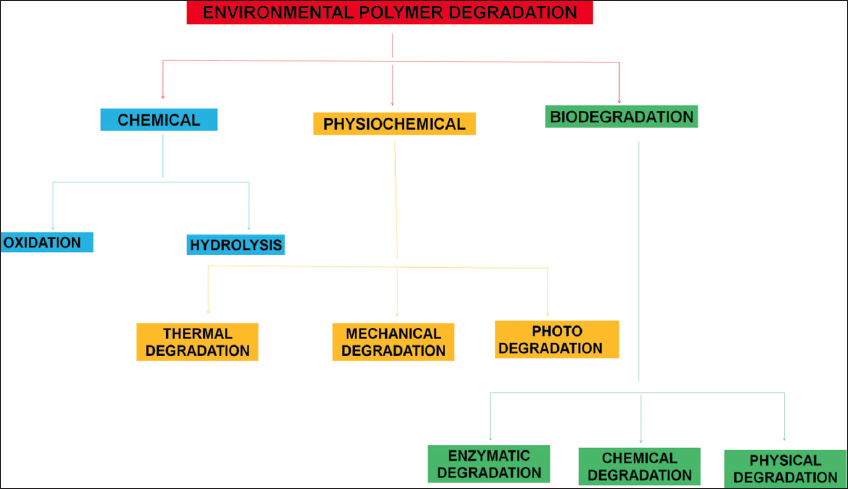 The crystallinity impacts rate of plastic degradation. The more the crystallinity of the polymer, the greater is the need for oxygen and water, which may trigger the degradation process. The amorphous portions of the polymers are also known to have some role in degradation process as they are thought to be more sensitive to thermal oxidation. Furthermore, the molecular weight of a polymer might also impact its breakdown rate. Polymers with a high MW, according to this idea, degrade more slowly due to their smaller relative surface area [19].