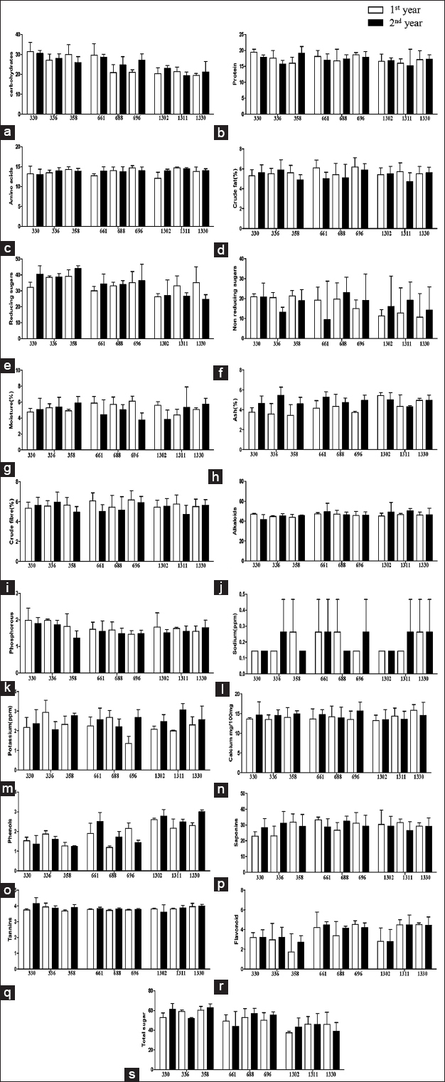 For biochemical analysis, the leaves were hand harvested from each plant. Fifth and sixth mature leaves from the top of the plant were taken. Leaves were collected from all the four directions of each plant. The collected leaves were cleaned and shade dried and after that, the composite leaf samples were stored and analyzed in the laboratory for different parameters using standard techniques given below: