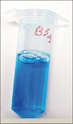 | Supplementary Figure S5: Bradford assay for protein estimation. This picture shows that after reaction of bradford reagent with BS4 extract, it change its color to blue which signifies the presence of high amount of protein. [Click here to view] |