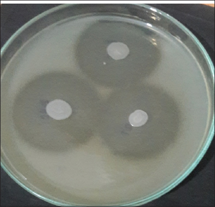 ![]() | Figure 2: Zone of clearance around the bacterial colonies after 48 h of incubation. [Click here to view] |