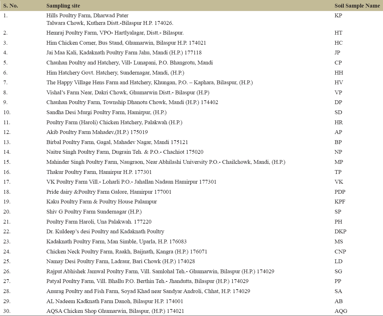 Table 1: List of poultry waste soil samples collected from different locations in Himachal Pradesh.