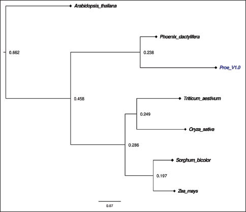 ![]() | Figure 9: The linear tree generated between model plants Phoenix dactylifera and Phoenix roebelenii. This [Click here to view] |