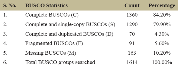 | S. No. | BUSCO Statistics | Count | Percentage |