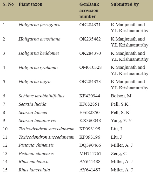 | 2 | Holigarna arnottiana | OK235482 | K Manjunath and Y.L Krishnamurthy |