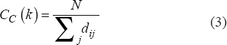 It can be determined by calculating the “shortest path lengths” between nodes presented in a network. It is the reciprocal of farness and can be calculated by (Eq.3)