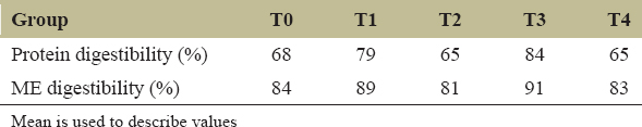Table 5: Effect of synbiotic formulation with phytoactive on nutrient digestibility in Cobb 430Y broiler chickens.